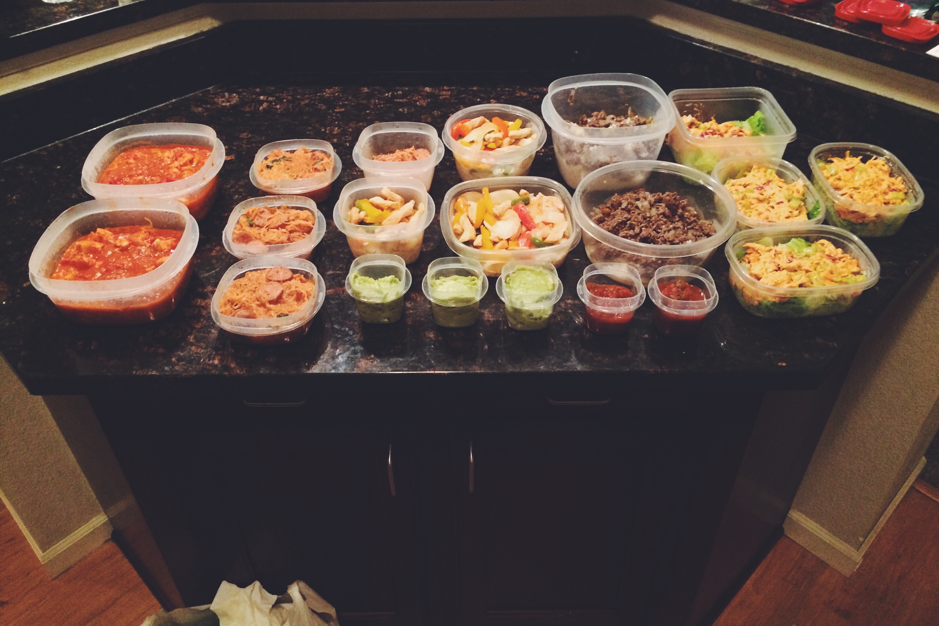 As much as I wanted to spend the rest of my Sunday sitting on my ass watching TV with the boys, I knew that today was my only chance to meal prep if I want to maintain my sanity this week! So, like I said leg day was a great idea at the time until I spent 6 hours standing in the kitchen cooking. Pretty positive that I am not going to be able to walk tomorrow. Love my hubby though, after I finished cooking, he helped me clean up the kitchen and then drew me an Epsom salt & bubble bath to help my muscles. What a guy!