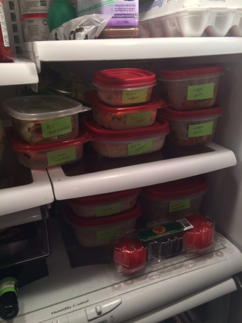 Four rows of tupperware in the fridge is my favorite way to start a Monday! Truth be told, this food will only last us until Wednesday. Its all good though because coming up on the menu for the better half of the week is Shrimp Scampi w/ Zucchini Noodles, Taco Salad w/ Avocado Cilantro Dressing and Chicken Stir Fry! I’ll post yummy pics later in the week!