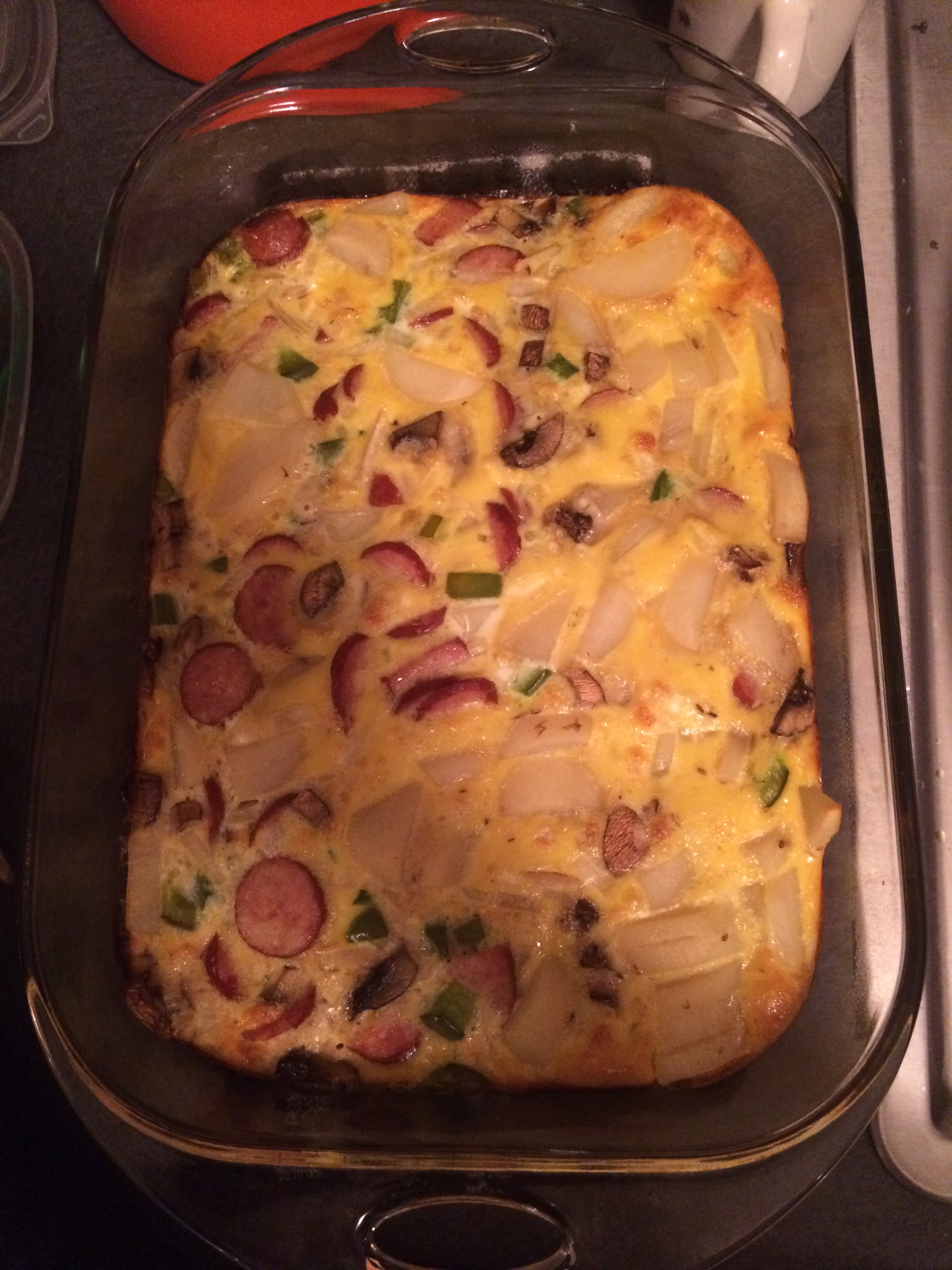 So the first thing I made tonight was an egg bake that I can grab and microwave immediately following my “waking up” phase.