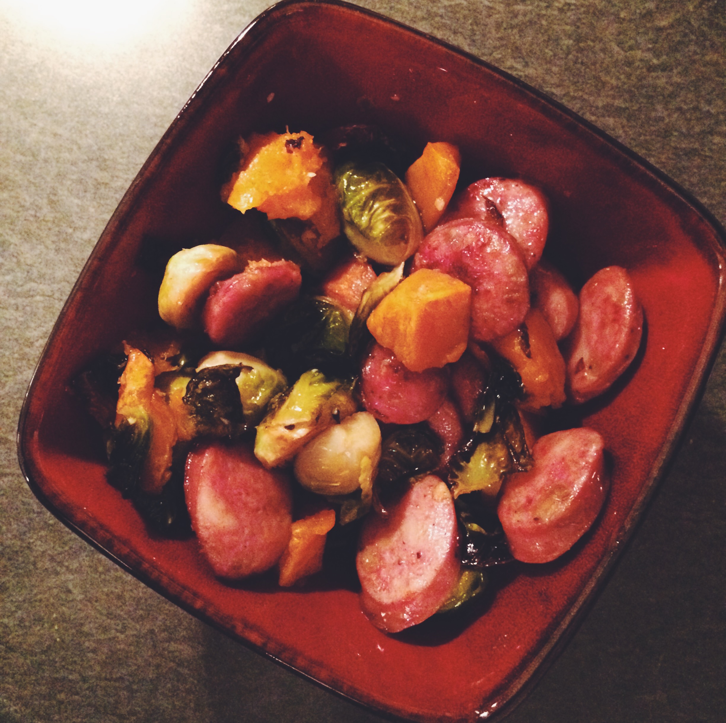 What’s my favorite meal ever? You guessed it…. Brusselsprouts and chicken sausage! That’s what was for dinner!