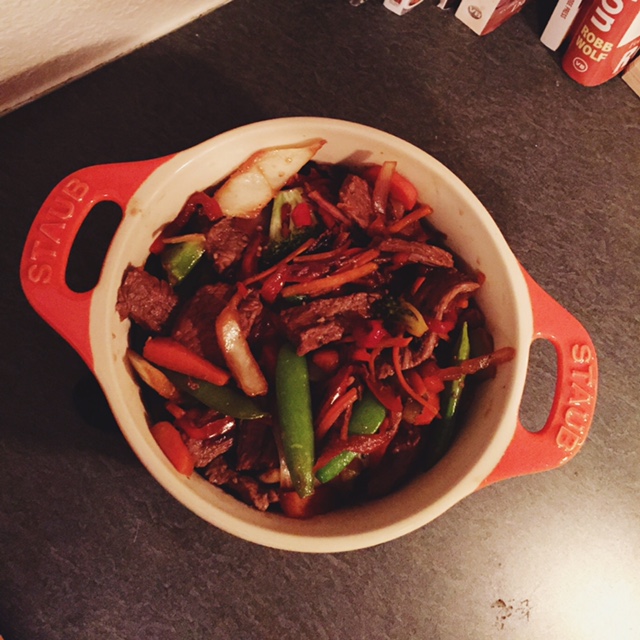 Once veggies are just about done, toss your steak back in and stir well. Add in 1 more tablespoon of coconut aminos in teriyaki, and another splash of regular aminos if you feel the need (I always do). Cover and let simmer on low for about 10 – 15 minutes. The veggies wont’ turn out too soft but it helps to make sure that everything soaks up the yummy flavor.