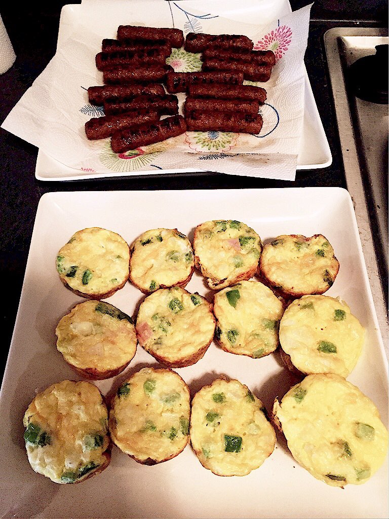 Bake at 350° for approximately 20 minutes until eggs have risen and hold their shape when removed from the muffin tin.