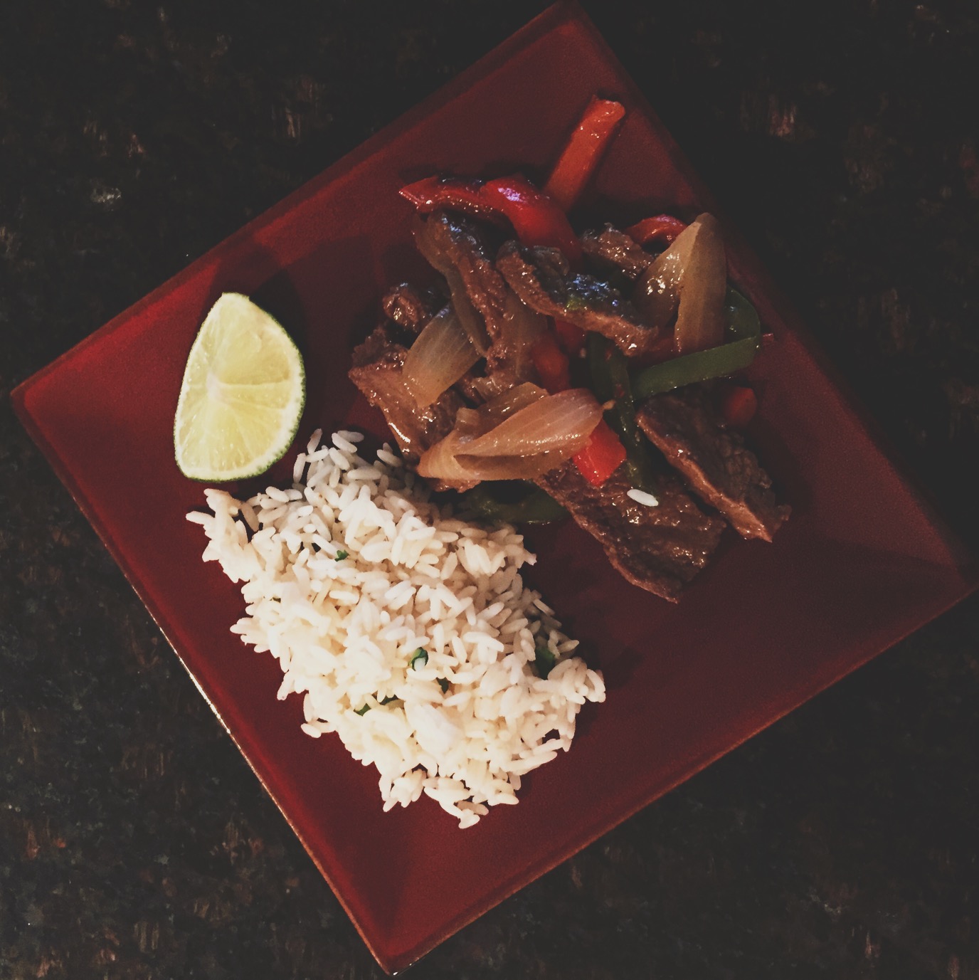 I’m on #teamwhiterice so we paired our fajitas with some delicious cilantro lime white rice. It wasn’t quite as delicious as Chipotles, because duh…. nothing is as good as Chipotle’s white rice. But, it did hit the spot. If you are one of those out there that is not on team white rice, I suggest pairing with cauli-rice. You just have to have some kind of rice with your fajitas!
